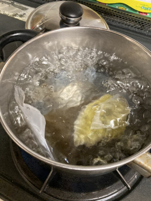 ニボレモンは、大ぶりのレモンを搾り全体に満遍なくかけます。