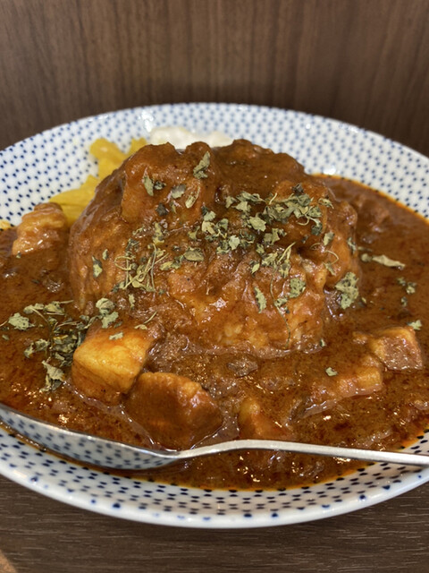 牛すじの角切りもホロホロに煮込まれていますが、濃厚なカレーと相まって最高の出来栄えです。