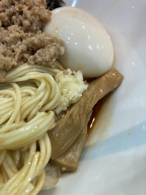 【限定11】味付きアブラと炙りブタが入る濃厚煮干まぜソバ!