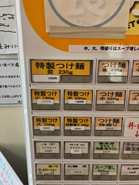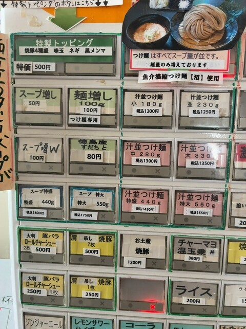 4月8日よりオーダー方法が変更になったそうで、特製トッピングが別料金に、また、つけ汁の量も選択可能となります。