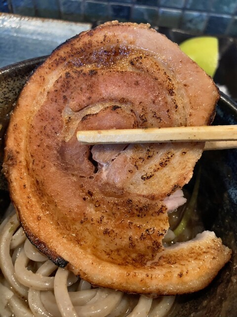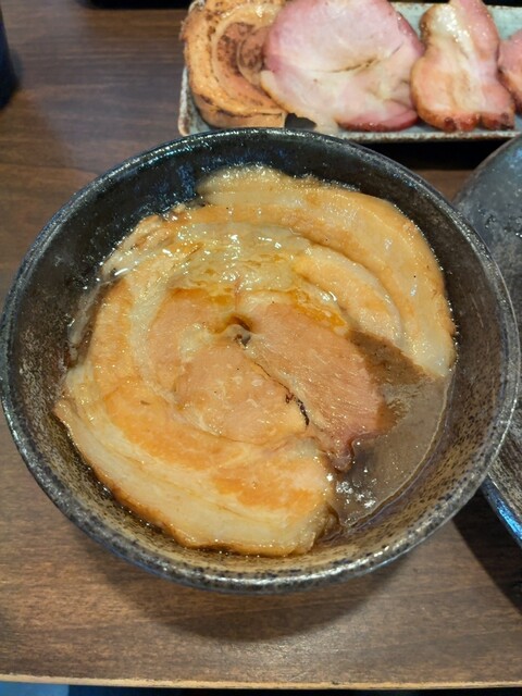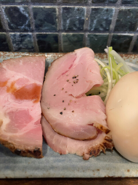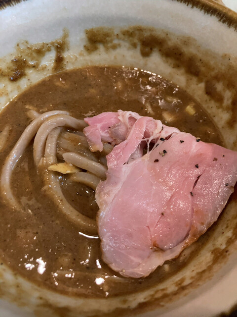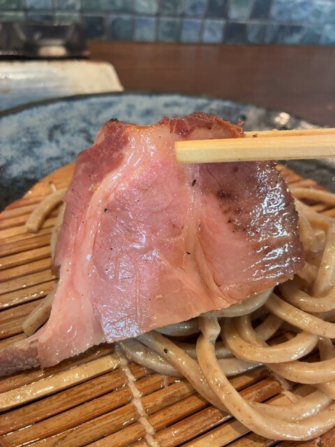 これは個人的な意見ですが、これだけのつけ麺であれば、レアチャではなく、炙り豚や吊るし豚、炙り鶏モモなど、火入りのある豚の方が合うような感じがします。