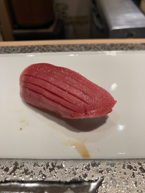 真打登場!養殖ではありますが、鮪仲買の名店「やま幸」の鮪赤身になります。中トロと間違うようなねっとり感がありますが、味は鮪本来の赤身の旨さが際立ちます。