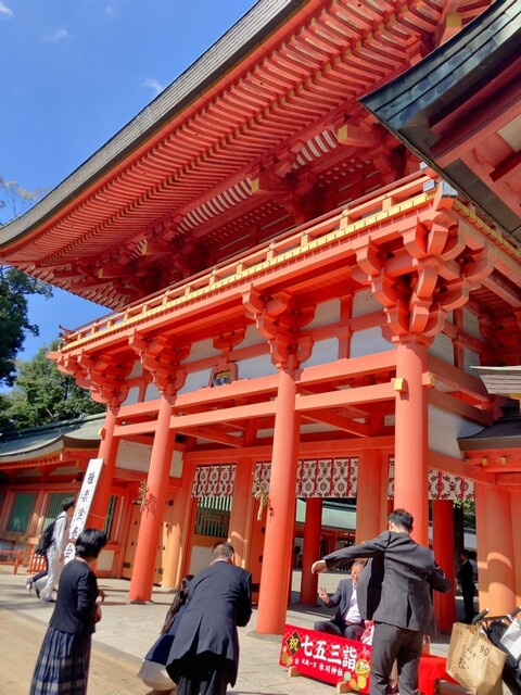 神社は、お宮参りとちょっと早い七五三でなかなかの人出となっています。