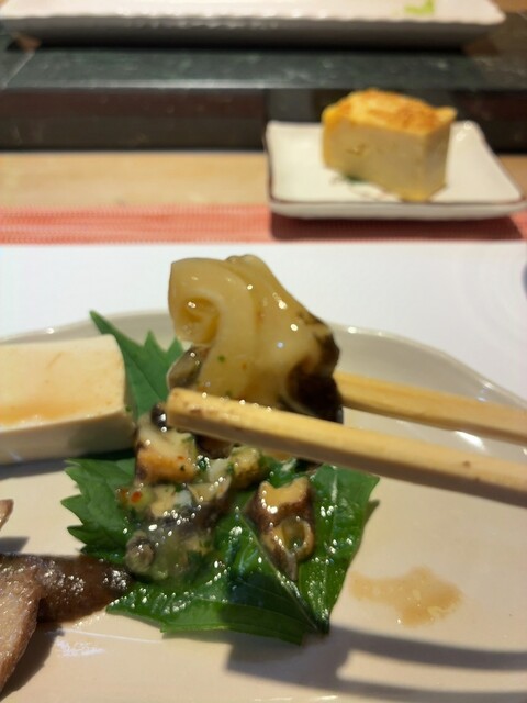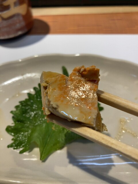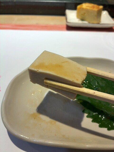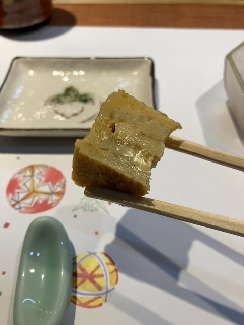 貝柱と真鯛を擦り卵と混ぜ合わせ焼かれています。出汁巻きとは違い、具材をしっかり感じられます。