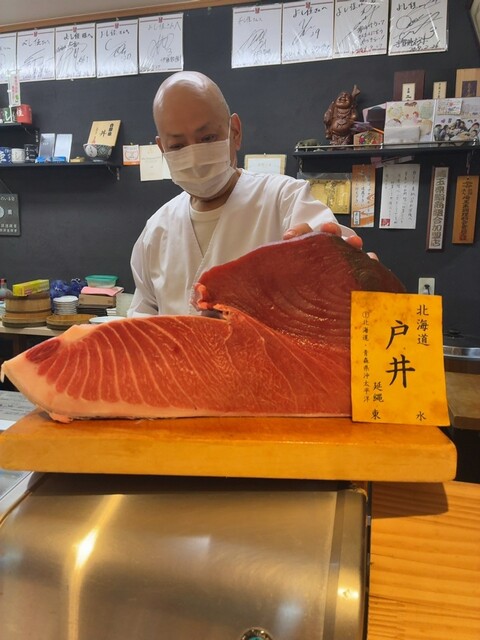 帰りがけに、夜の部で提供される北海道戸井産の本鮪を見せてもらいます。