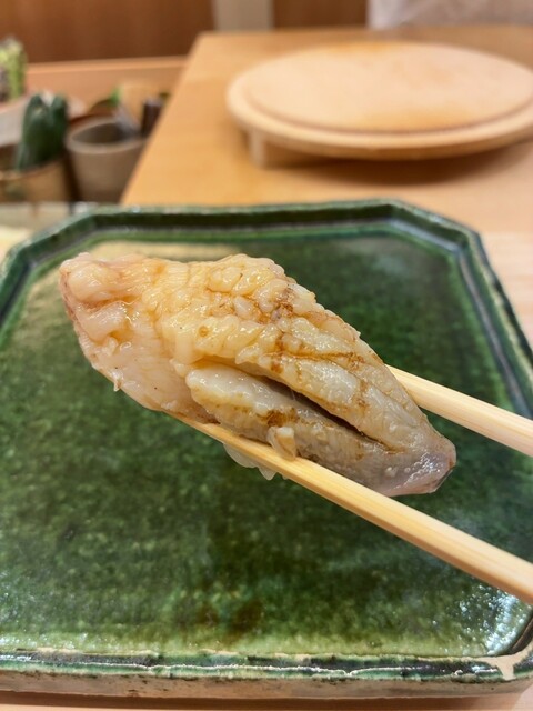 今が旬の走り、新子の握りは、透明感のある柔らかい身が口の中でとろけ、甘みと旨みがじんわり広がります。ちょっと前は、こんな小さなサイズで1杯2,000円したそうです。いやー、食べられて良かったです♪
