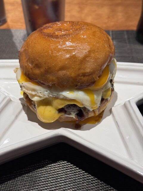 摘んでいる内いよいよ星型の皿に乗ってバーガー登場