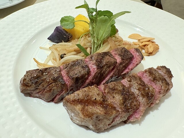 神戸旅行でやはりステーキが食べたく、地域のお店に来てみました。2人だと片方プラス料金でロースにし、赤身肉と半分ずつ食べ比べできるように盛り付けてくださいます。