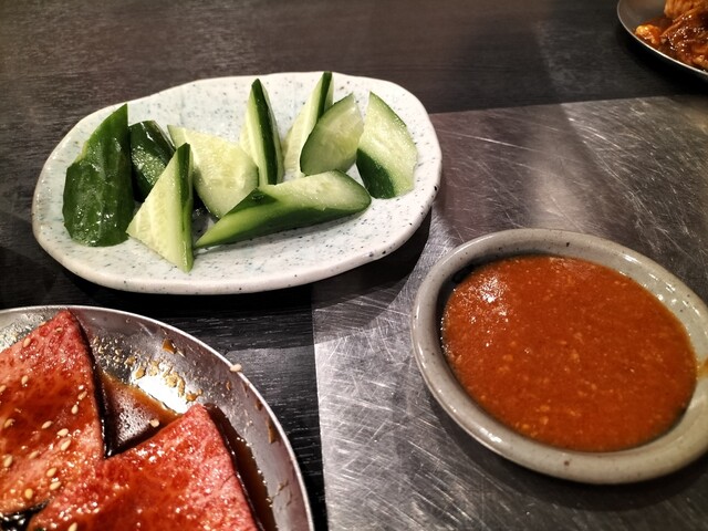 かちはもろキュウ大好きで安楽亭ではいつも何皿も頼む(食べ放題の)。でもその安楽亭のよりおいしかったって。味噌が。ここはマヨ無いけどこんだけ味噌がうまければいいって。