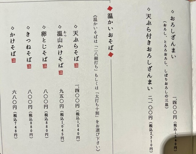 メニューには辛味おろしという冷たい蕎麦メニューもあるので、伝統的な辛いおろし蕎麦も他では味わえるようです。