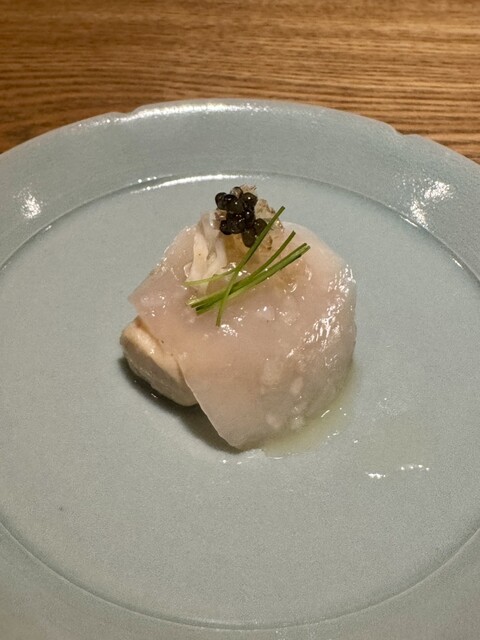 上に三つ葉と生胡椒のオイル漬けがのっていてパリッの皮にジュワ〜とくる脂が美味。