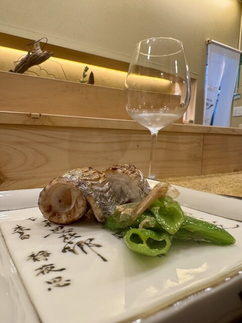 夏らしく爽やかなハモの上には、梅のソース。
