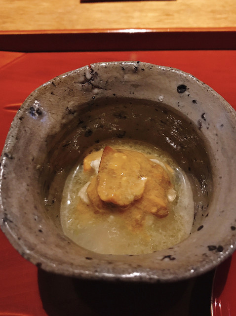 まず、クチコとユリ根の和え物から始まり、香箱ガニ、松葉ガニ、ポルチーニの茶碗蒸し、松茸の天ぷら、カラスミ蕎麦、白子のお椀、カマスと栗の炊き込みご飯も絶品!お土産に包んで頂いて...