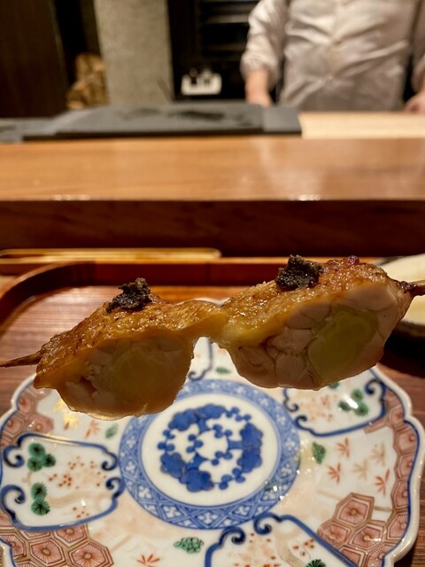 茶碗蒸しに乗ったブラウンえのきも、鶏の脂と薪の薫香で美味しさ倍増!もちろん焼鳥は言うことなしですが、鶏の脂ってすごい、薪の力ってすごいと感じる品々でした!