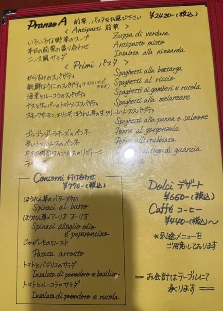 今回もPranzoB前菜・パスタ・メインでプリフィクス3960円