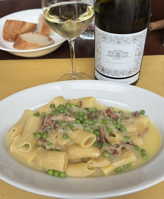 自家製リガトーニ 生ハムとグリンピース モルタデッラのソース