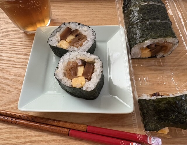 半分でお腹いっぱいになるのに止められず結局1本丸ごと食べてしまう魅惑の海苔巻だ。