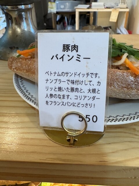 店内は小さく、イートインスペースも少しあるが、今日のようにテイクアウトが絶え間ないなら落ち着かないかも。結局10分以上待って持ち帰ったバインミー、、、