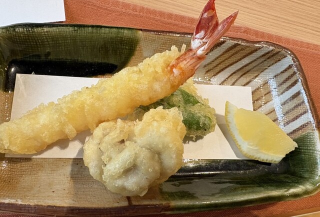 感動の天ぷら。海老も白子も外はカリッとして中はミディアムレア。海老も白子も一口食べて「うわぁ〜❤︎」と感嘆の声が出てしまった。