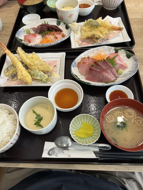 県外の友人を連れ、土曜日の昼に伺う。刺身、煮物、天ぷらから2品選べるランチ用御膳をオーダー。