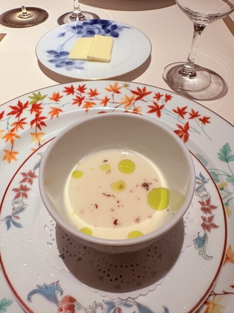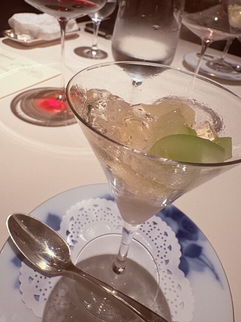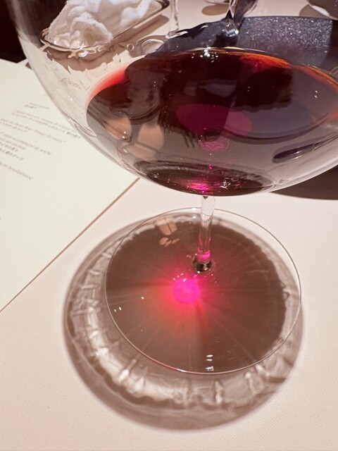 ソムリエさんのシャンパン、ワインはプレミアムなペアリングだけあり珍しいものを出していただき、奥深いワインの世界を存分に楽しめました。