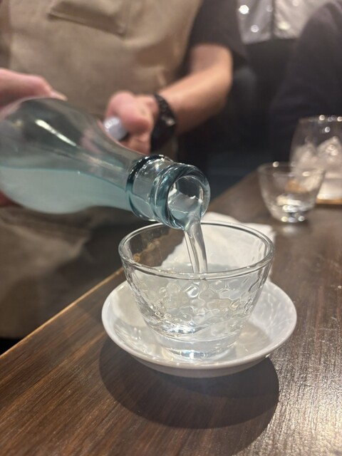って日本酒をお口あけしていただき、此方がにごりでフルーティで少し微炭酸な喉越しが堪らなく美味しくてかなり気に入りました☺️❣️