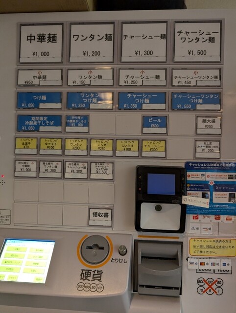 前回はチャーシューラーメン普通盛り1300円プラスゆで卵100円を頼みました。今回は違う物をと思ってましたが、全く同じ物を頼んでしまいました。現金だけではなく、バーコードやクレジットカードに対応しています。店は9時までです。それより早く店じまいしてる事もありました。この日は8時半過ぎでした。そこから、ゾロゾロとお客さんが10人以上入りました。流石、人気店。