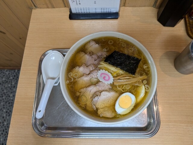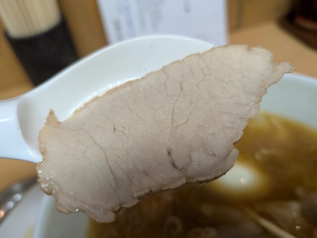 3回目となる今度こそラーメンではなくつけ麺を頼もうと思っておりました。でもつけ麺でもラーメンと同じ麺なのでちょっと気が引けてしまいました。麺が太くなればまた異なる楽しみがありますから。そして選んだのは、チャーシューラーメン1300円プラス大盛り200円とゆで卵。前回と違うのは大盛りかどうかだけ。結構お腹空いてまして、挑戦しました。ラードで覆われてますがしつこくはない、鰹節や煮干しの上品な味のスープです。永福町とどう違うかと問われても答えられないくらいです。こちらには、つけ麺や冷やし中華があります。細い縮れた麺もそっくりです。このスープには合ってるのですよね。そういえば、永福町は夏場は柚子が入ってませんでした。大宮は常に入ってるようですね。まぁ未だ3回目だからデータ足りません。この日のチャーシューは厚さがかなり有りまして、結構硬かった。食べ応えは有りました。麺は食べ切れるか少し心配だったので麺から中心に食べていきました。飽きないのですよね。やはりスープが美味しいからでしょう。調味料を一切使った事はありません。胡椒すらかけません。七味とかお酢とか、胡椒が用意されております。最後に残ったスープも結構飲みました。身体に良くないのは分かってるのですけどね。