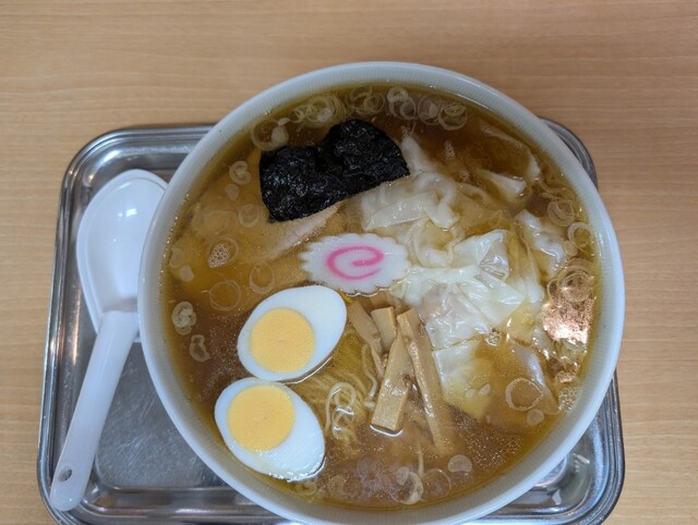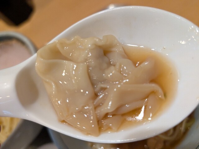ここは永福町大勝軒系のお店です。基本的に中華麺一本です。。チャーシューとメンマがトッピング出来るだけ。でも大宮大勝軒は特別なのです。麺硬めとか、脂多めとか、ネギ多めとか、お客さんの要望を聞いてくれるのです。本家には聞いてくれません。またワンタンやゆで卵がトッピング出来ます。そして、キノコ汁つけ麺も通年やってます。煮干しの冷製煮干しそばというのもあるようです。勿論、これは夏季限定です。昨年も食べれませんでした。久しぶりですと、オーソドックスにどうしてもなってしまいます。ここのチャーシュー麺は何度か食べておりますが、硬くてパサパサしていて私には美味しく感じられません。本家も同じ味なのでそう言うものなのでしょう。食べたことがないワンタン麺をチョイスしました。肉ワンタンとエビワンタンの二種類が入っています。ゆで卵はごくごく普通でしっかりと煮て半分に割っております。本家との微妙な味の違いは、ここは柚子が強めに効いてる所でしょうか?永福町遠いし、大宮は帰宅途中で寄れるので本家にあまり行かなくなって来ました。本家は並ぶ場合が多かったです。どちらも優しいホッとするような煮干しと鰹節のスープで飽きが来ません。