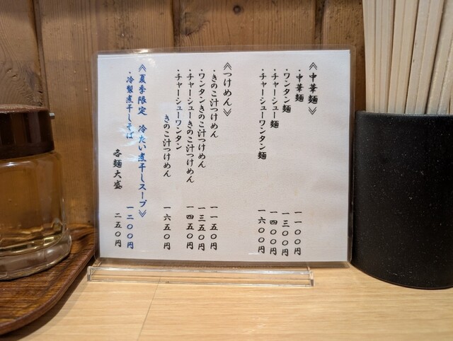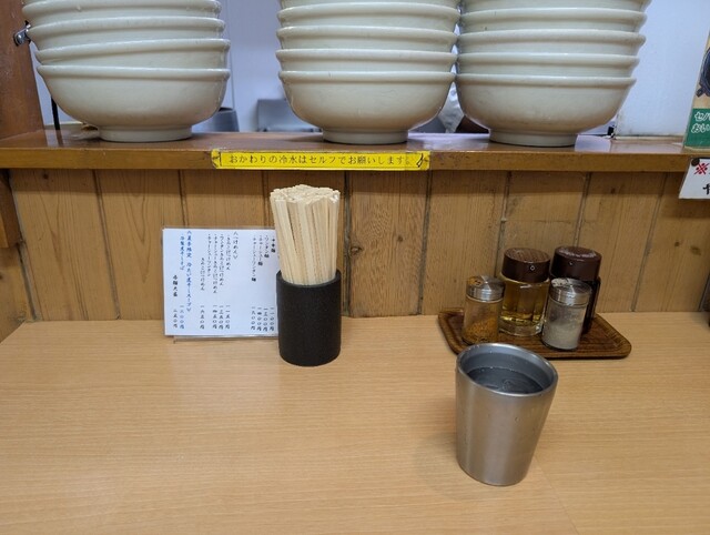 結局冷やしらぁ麺は一度しか食べられませんでした。一番のお勧めは中華麺ですからまぁ問題ないのですけども、本当に暑い今年なんかは暑いらぁ麺を食べるのが辛いです。ガンガンクーラーで冷えた店で食べるので少しはマシです。この日は少し涼しくなってきてました。冷たい氷水を先ず頂いて待ちました。