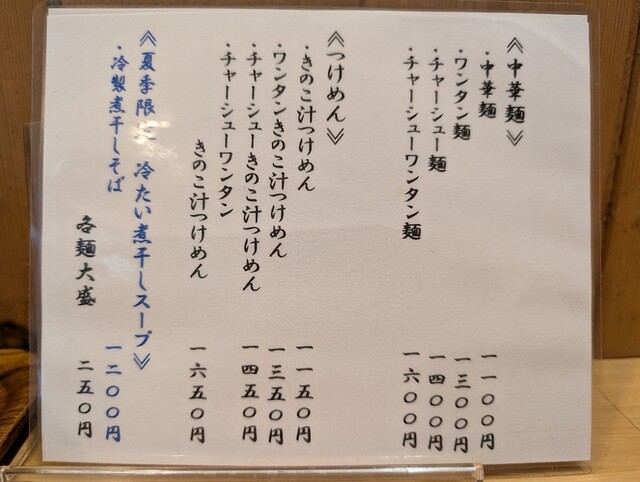 一ヶ月少し前に、冷製ラーメンを食べてからつけ麺が気になっておりました。きのこ汁つけ麺となってるが特に気になってました。煮干しスープにきのこ汁?が加わっているようでした。少しとろみがありました。永福町大勝軒らしさはちゃんと残っています。これはこれで美味しいラーメンでした。
