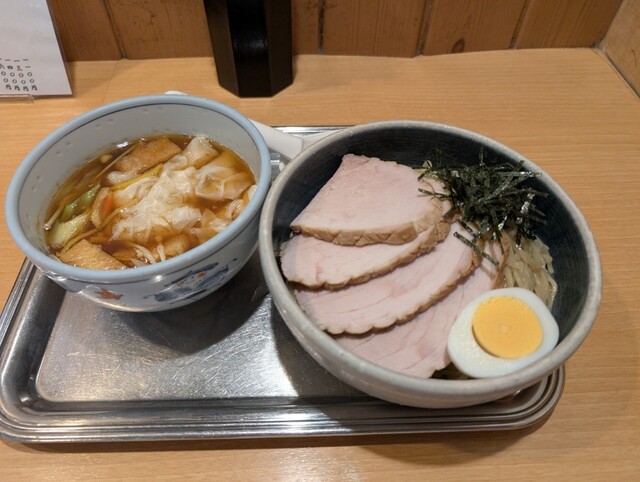 チャーシューワンタンきのこ汁つけ麺大盛りを注文しました。