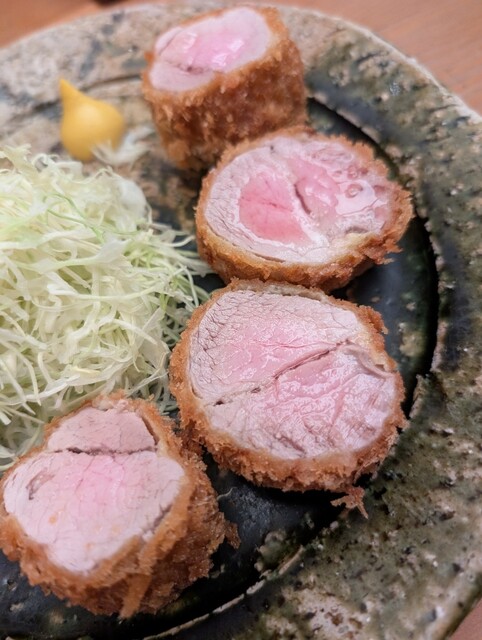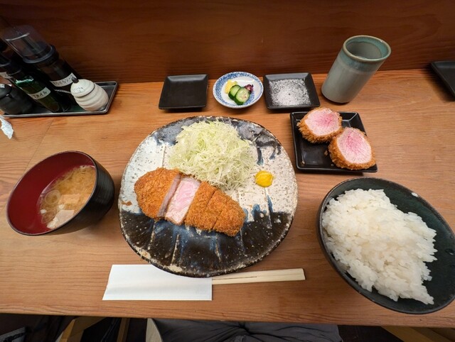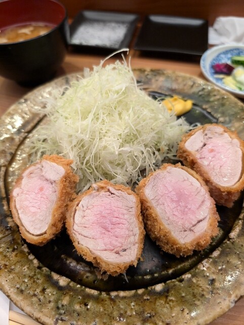 ここのキャベツの千切りが何処よりも細い。とても食べやすい。オリーブオイルが合います。ソースが2種類有りまして、サラッとしたソースと割合ドロっとしたソースです。ドロっとしたソースは使った事ないので答えられませんが、サラッとしたソースはキャベツに合いました。折角の良質のお肉ですから調味料なしで私は食べております。インバウンドの方達は大体ドロっとしたソースをベッタリ付けて食べてます。好き好きではありますが、日本人は繊細ですね~。
