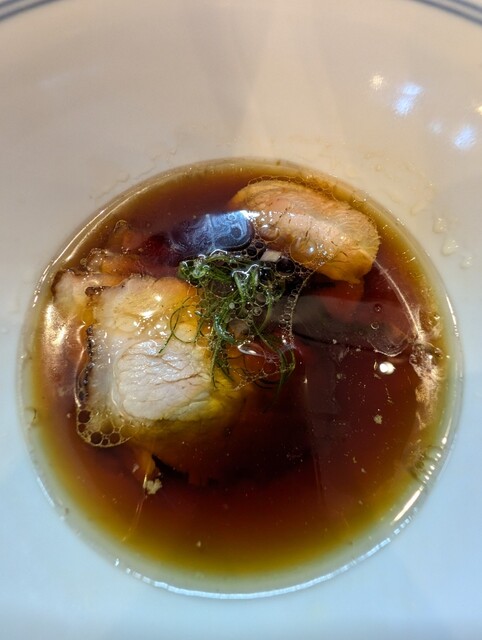 琥珀色のスープ。カエシと鶏でこの日はカエシを強く感じました。