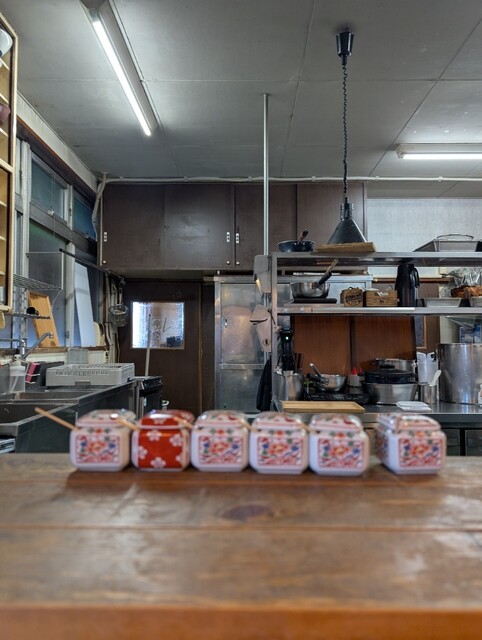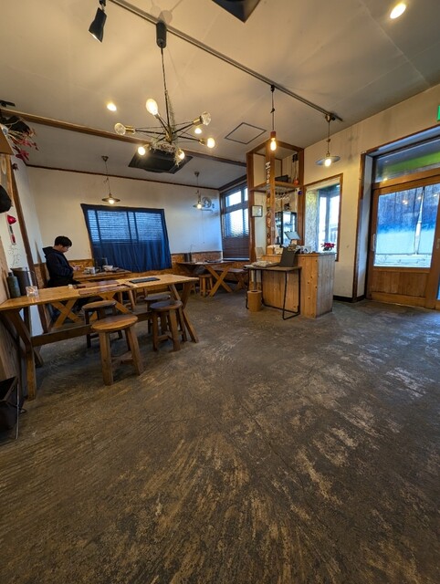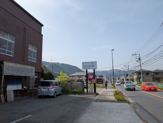 お店は日向和田駅を降りまして、真っ直ぐに和田橋を渡って進み、吉野街道に突き当たります。そこを右に曲がると直ぐにお店が見えます。既に車が沢山、バイクも停まっています。入り口から若い女将さんが出て来て、ポケベルを客に渡しておりました。受け取って二階の待合室に向かいます。結構広くて、カップル席が三つ、一人用のソファが四つございました。早めに到着し25分くらい待ちました。14時半予約で案内されたのは14時35分で時間通りでした。お一人の方はカウンター席になります。全部で5席です。少し間隔を開けて椅子が置かれていてゆったりと食べられます。2人席が4つだったと思います。清潔感漂う店内です。ウッディなのも青梅の山とマッチしています。