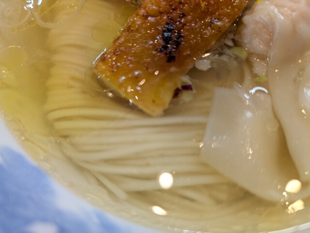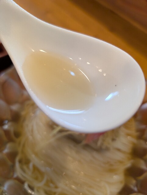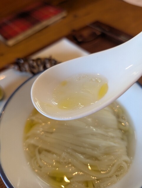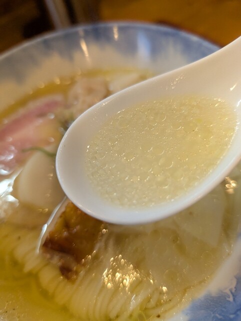 かけ出汁塩らぁ麺は何時もは特上として頼みます。かけ出汁の方が味が分かりやすかったです。優しく塩っぱくないスープは何も入れないほうが引き立つようです。鶏油が無くなってもスープ自体が上質でした。それとツルッとした麺が合っています。