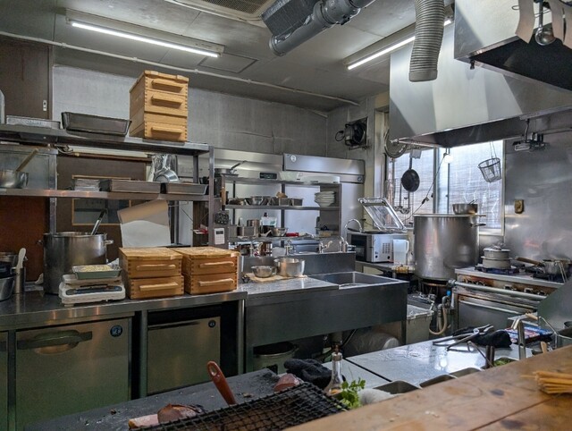 カウンター席から広い調理場がよく見えます。