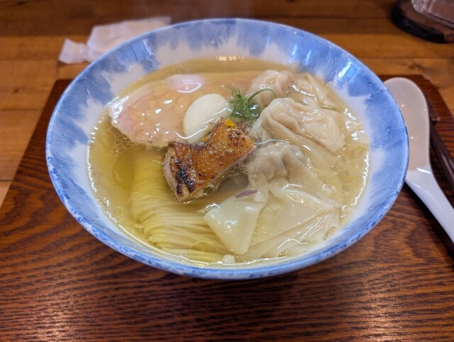 特製塩ラーメン。雲呑やチャーシュー全部載せ。