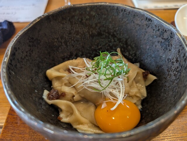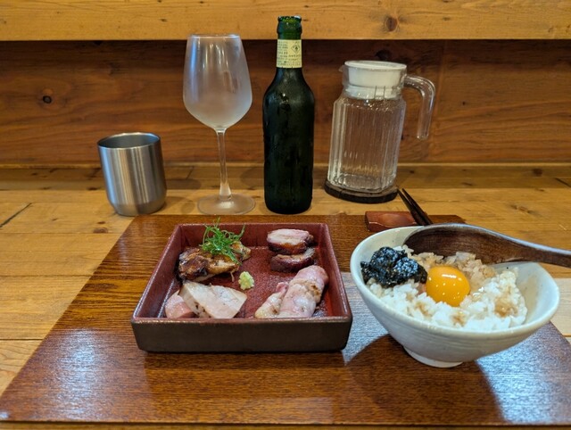 注文は迷いました。醤油?塩ラーメン?つけ麺?小麦ラーメン?出汁ラーメン?丼も3種類ありました。基本は醤油ラーメンだろうと思い込んでFeelThe特上醤油ラーメンと名古屋コーチン有明海苔佃煮ご飯を頼みました。敢えて連食せずに味わう事を選びました。醤油が個性的で主張が強く驚きました。あまり今まで似たようなスープを食べた事がありません。スープの上に鶏油が浮いていて案外アッサリではないです。ひとつひとつの具材のクオリティが高くて本当にラーメン何だろうかと思わされました。スープが強いから太麺があっても良いのかとも思うのですが、ここの細い滑らかな麺を食べてしまうとこれ以上のマッチングはないだろうと感じます。透明で繊細な麺が舌に触れてからスルッと喉越し良く入ってくるのが快感でした。他店で感じた事はない感覚です。この日の豚さんは埼玉県の何処産か聞き漏らしましたが眼前で炙られてる様子を見ました。柔らかく香ばしく美味しかったです。卵ご飯は先ず名古屋コーチンの濃い味と海苔の佃煮がよく合ってました。紫蘇のような味でした。二つが強すぎてご飯の味があまり分かりませんでした。ご飯もう一杯いけちゃうくらいでした。