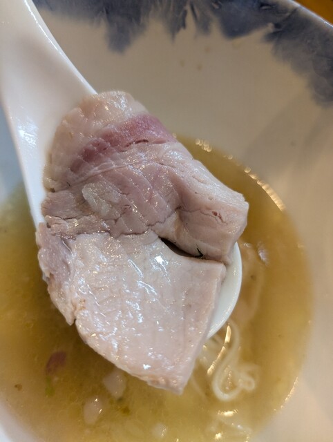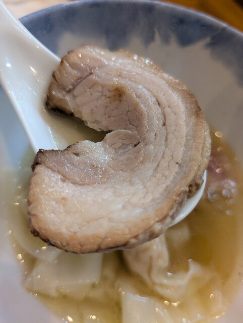 特上塩らぁ麺を久々に食べました。チャーシューは薩摩黒鶏の黒王のスライスの仕方を変えたと店主はおっしゃってました。ここの塩らぁ麺は感動するくらいにスープが美味しいです。それに塩っぽさを抑えております。他店ではあまり塩を食べないのは、ここが合ってるのもありますが、塩っぽいからです。
