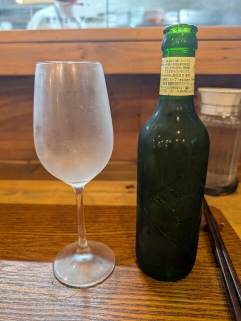 ハーランドを注ぐグラスは夏同様にキンキンに凍らせてあります。らぁ麺屋さんで中々無いサービスです。日本酒やワインも提供しています。クルマで来られる方も多いので一部の方しかアルコールは飲んでいません。