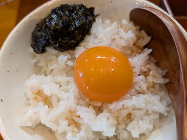 濃厚な生玉子とシソの佃煮のマッチングが絶妙です。おコメの美味しさをもっと味わえば良かったです。