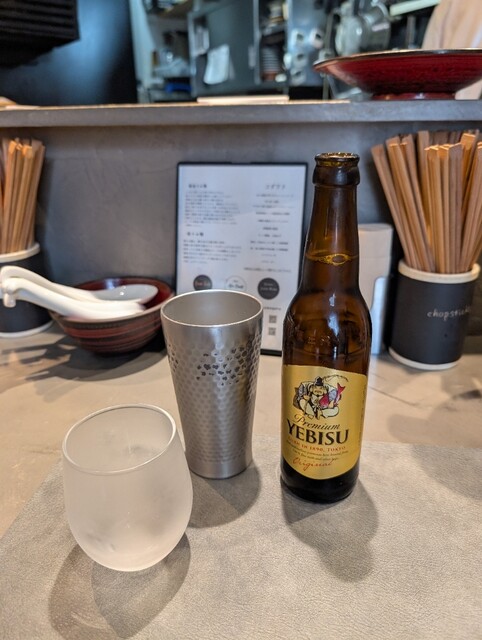 エビスビールを置いてるラーメン店は珍しい。グラス冷えでます。