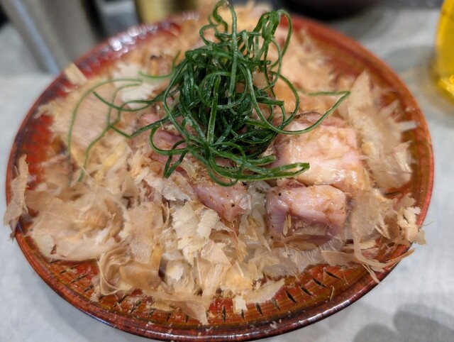 チャーシュー丼には鰹節がかけられてます。