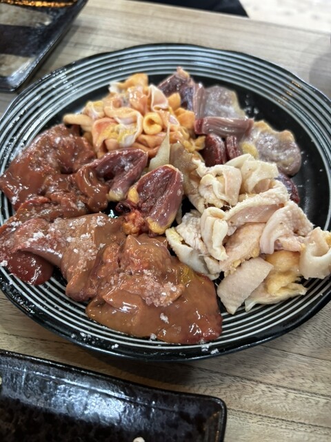 とり汁飯は濃い出汁が明確に主張し、旨味の輪郭がはっきりしている。軟骨の唐揚げはパンチがありつつ、肉付きの良さによって満足感が非常に高い。軟骨という名称以上に完成度の高い一皿だ。ももの塩焼きは自ら焼くことで鮮度の良さが視覚的にも伝わり、口にすると驚くほどジューシーで、焼いただけとは思えない旨味が溢れる。ホルモン盛り合わせは一切の臭みがなく、旨味のみが凝縮。ササミ刺・皮刺しは初体験だったが、生であることを忘れるほど澄んだ味わい。昼時でも待ちなく、炭火とともに幸福な時間を過ごせた。