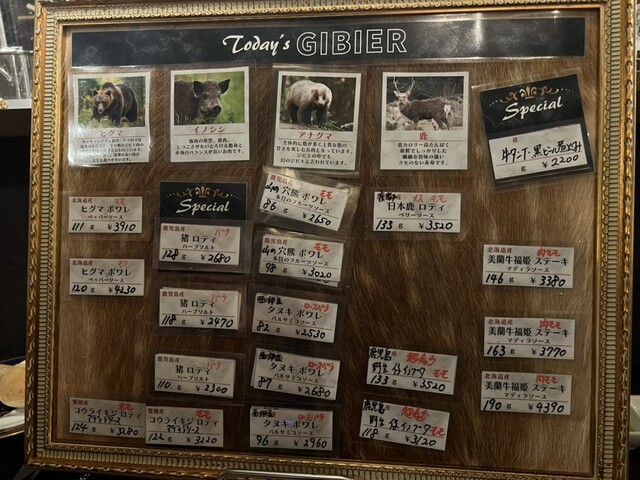 迷わなければ御茶ノ水駅からそんなに遠くないです。本格ジビエの店でした。野生イノブタ仔、ヒグマのポワレ食べました。イノブタは豚っぽいので初心者向けかと….熊は以前両国橋付近の老舗で食べた時たいそう臭かったので心しましたが臭み無く、硬いですが歯応えがあって美味かったです。パテやタルタルステーキも美味かったです。〆はプリン。最後の写真は食した熊の狩猟直後の現場写真だそうです。