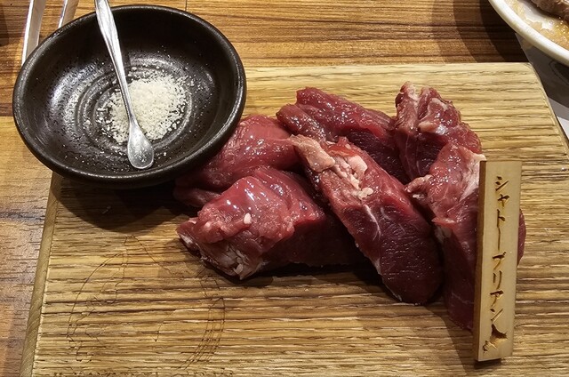 さらに、お肉の追加をし、生のタン、シャトーブリアン、リブロース、シンタマと続く。