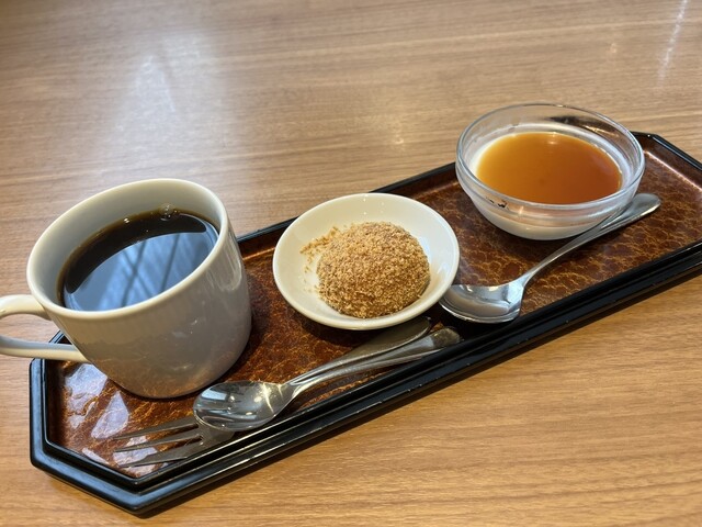 本日のデザート 杏仁豆腐の黒蜜ソース ピーナッツだんご 選べるドリンク コーヒー