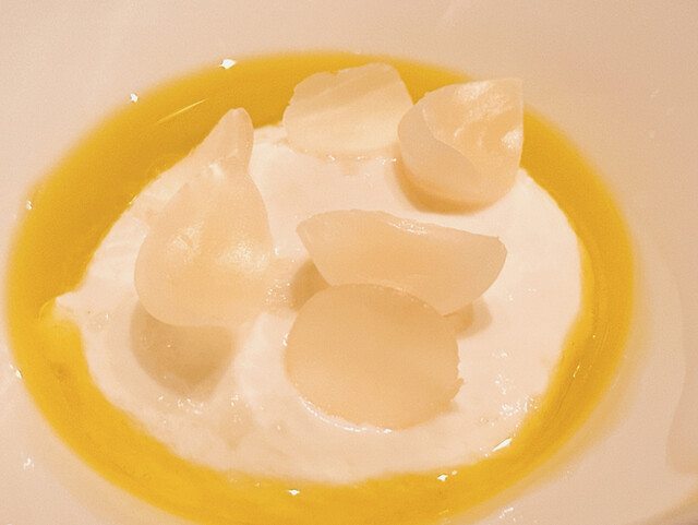 スペシャリテの「ヤギのミルクババロアに百合根」は初めて食べた時、正直いってあまり美味しいと感じなかったのですね。