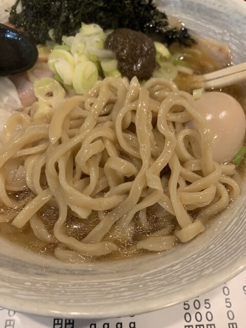 ファーストタッチは品のある印象の煮干しスープですが、トッピングの海苔が合わさると海苔の風味がプラスされまた違った味わいに。また、上にある煮干しペーストを混ぜると品のあるスープから荒々しいガッツリ煮干しに変化が楽しめます。